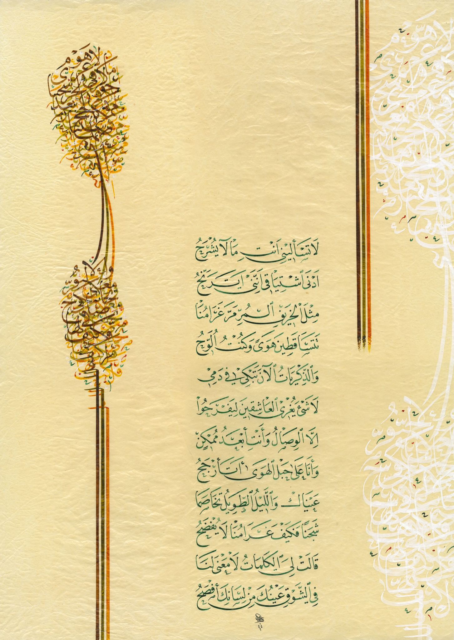 He learned the art of Arabic Calligraphy, inspired by the classic masters’ school,